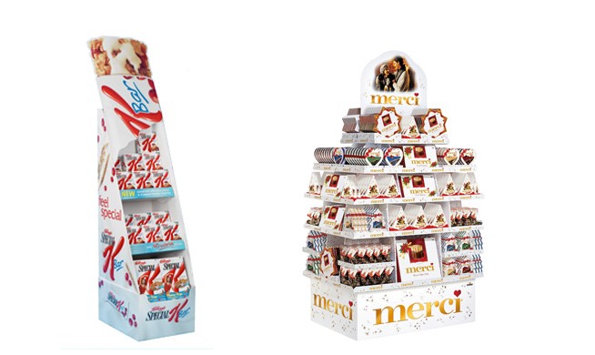 Unsere Thekendisplays sind in verschiedenen Materialien erhältlich, darunter hochwertiges Papier, das die Sichtbarkeit der Marke maximiert.