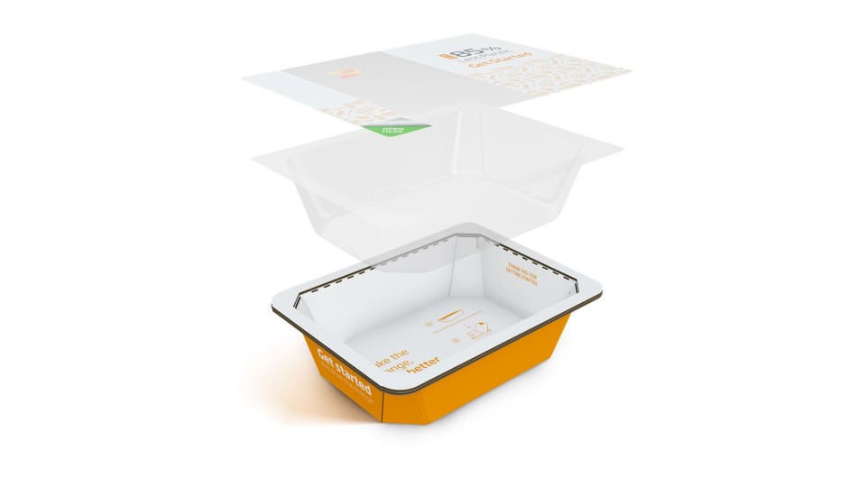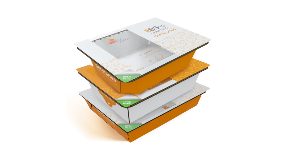 - Schale aus Wellpappe kann zu 100 % aus recycelten Materialien bestehen