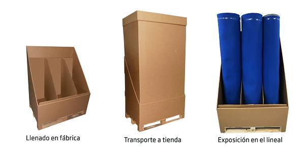 Un diseño de DS Smith Tecnicarton permite el transporte y exhibición de productos de gran volumen en un mismo embalaje