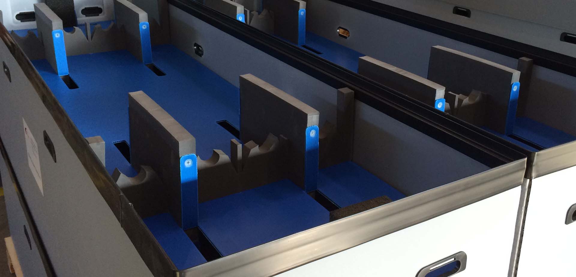 Soluciones de Handling Packaging para manutención, hechas a medida de las piezas, para así evitar roturas, ralladuras y movimientos innecesarios.