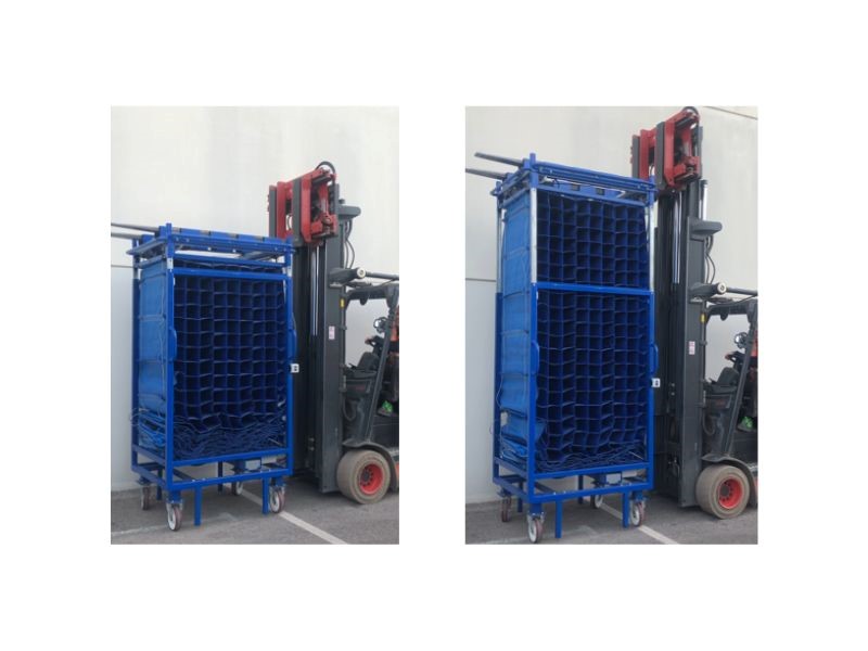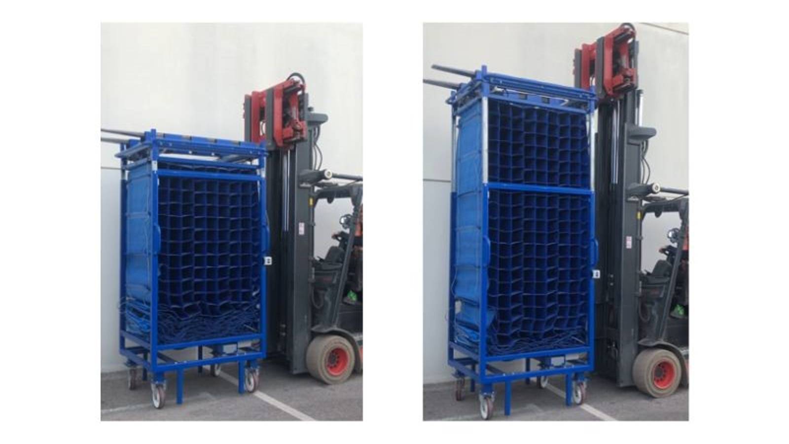 La versión telescópica de Tower Rack® optimiza el espacio durante el transporte y simplifica la manipulación durante la carga y descarga, sin perder las ventajas de almacenamiento vertical del Tower Rack® original.