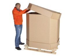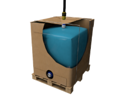 Un embalaje OneWay de cartón ondulado certificado ISTA 3H, diseñado para graneles líquidos de 1000 litros. Un cambio ecoeficiente para el embalaje industrial.