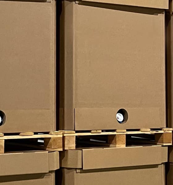 El contenedor de cartón ondulado de 1000 litros de capacidad y mayor resistencia para el transporte de graneles líquidos