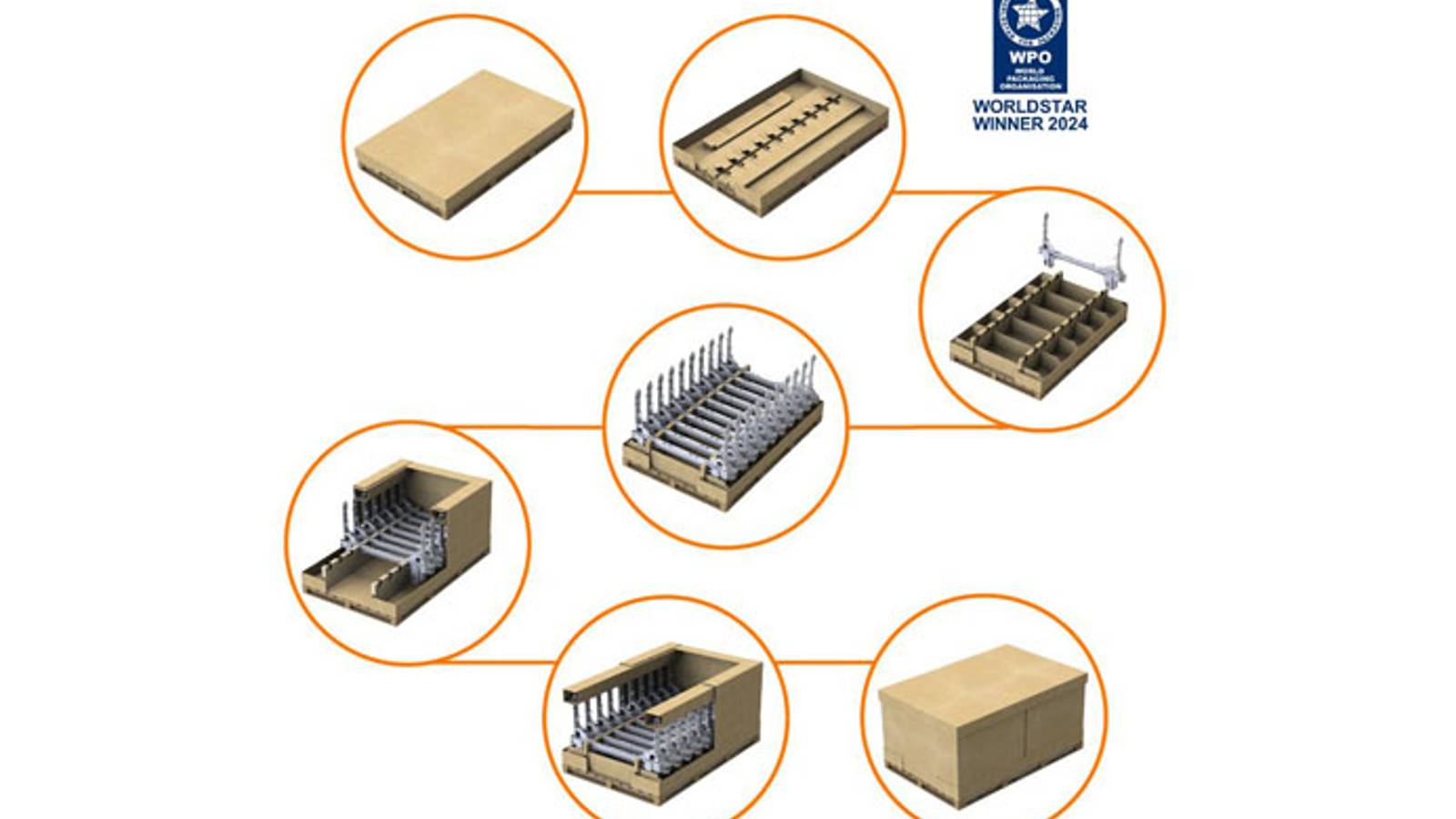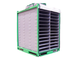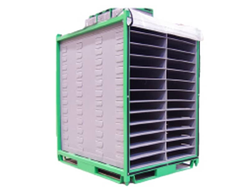 Su diseño permite la entrega directa a línea de ensamblaje del cliente y, para maximizar la seguridad, cuenta posicionadores automontables de cartón, tanto en la base del contenedor como en la parte superior de las piezas, fijando y protegiendo las mismas durante todo el transporte.