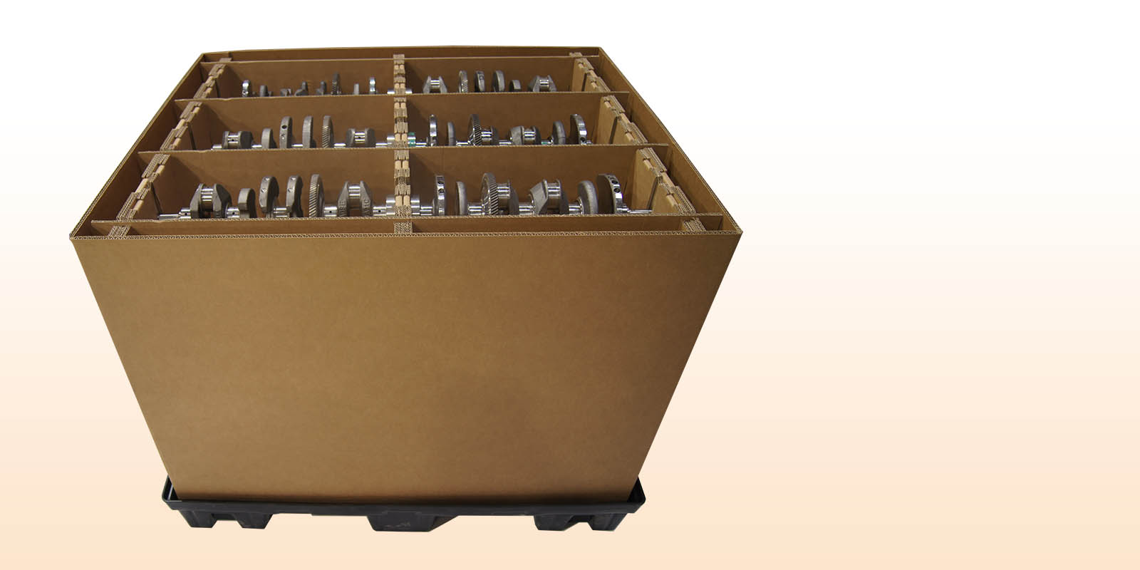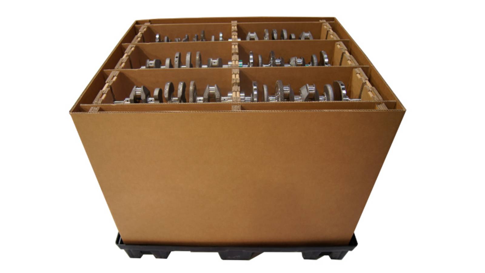 Posibilidad de incorporar un acondicionamiento interno completamente personalizado. Esta opción permite garantizar no solo la sujeción perfecta de los productos durante el transporte y almacenamiento, sino también la máxima optimización del espacio interior permitiendo el mayor número de piezas posibles por embalaje, garantizando la seguridad de las mismas.