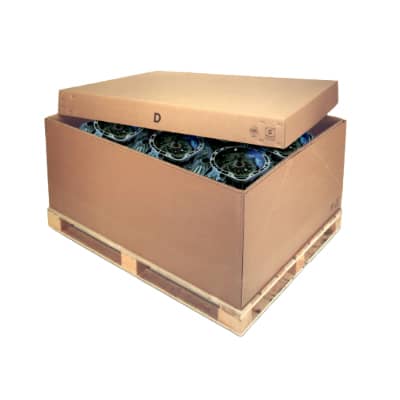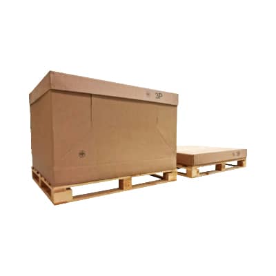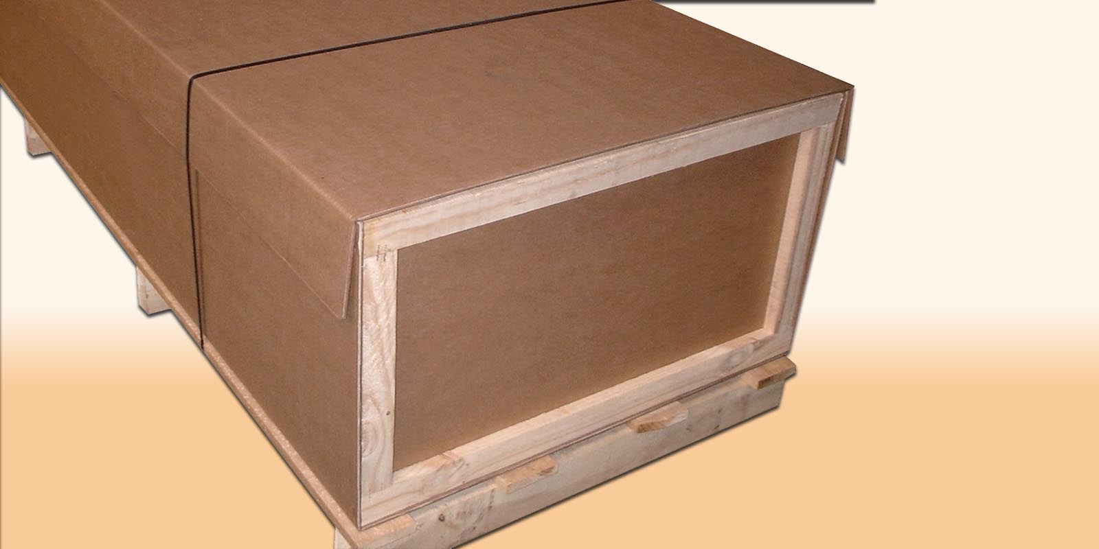 Este embalaje innovador está compuesto por un cuerpo de cartón ondulado de alta resistencia y testeros de refuerzo realizados en diversos materiales como madera y DM.
