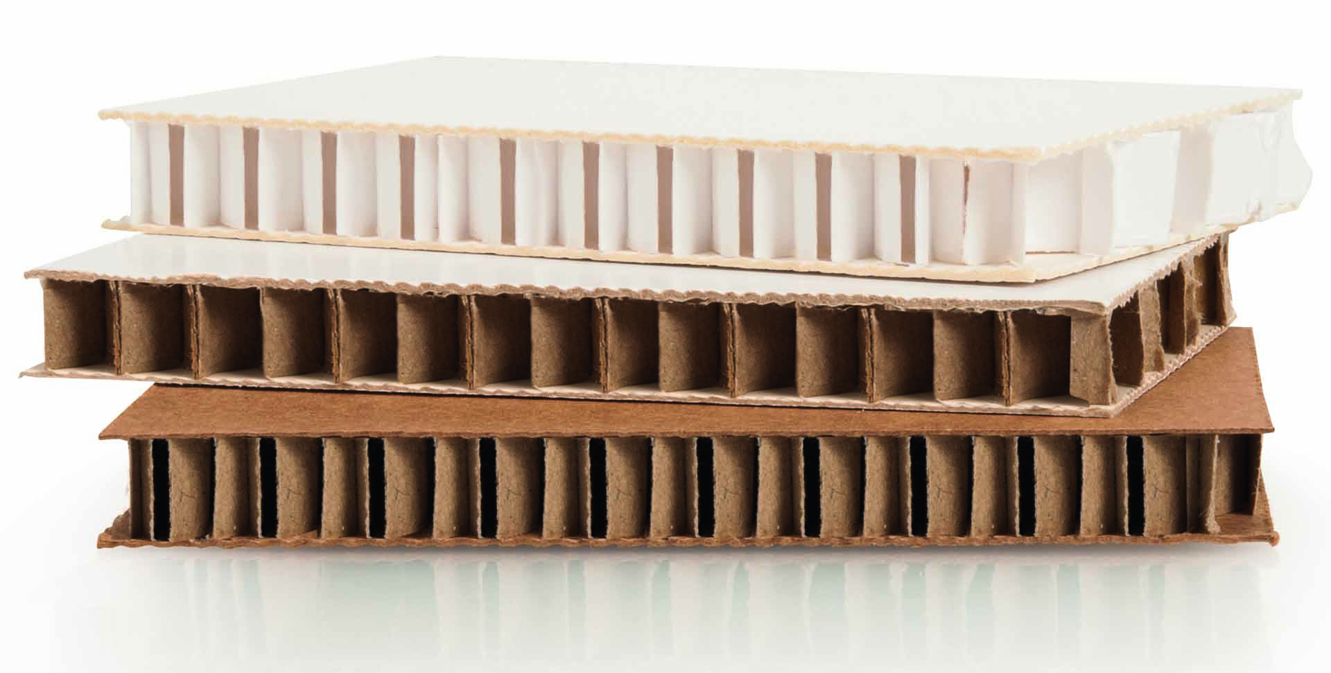Una estructura de cartón hexagonal fabricada en papel, de superficie lisa e imprimible, muy versátil y flexible, 100% reciclable y biodegradable, certificado FSC® y producido con recursos renovables.