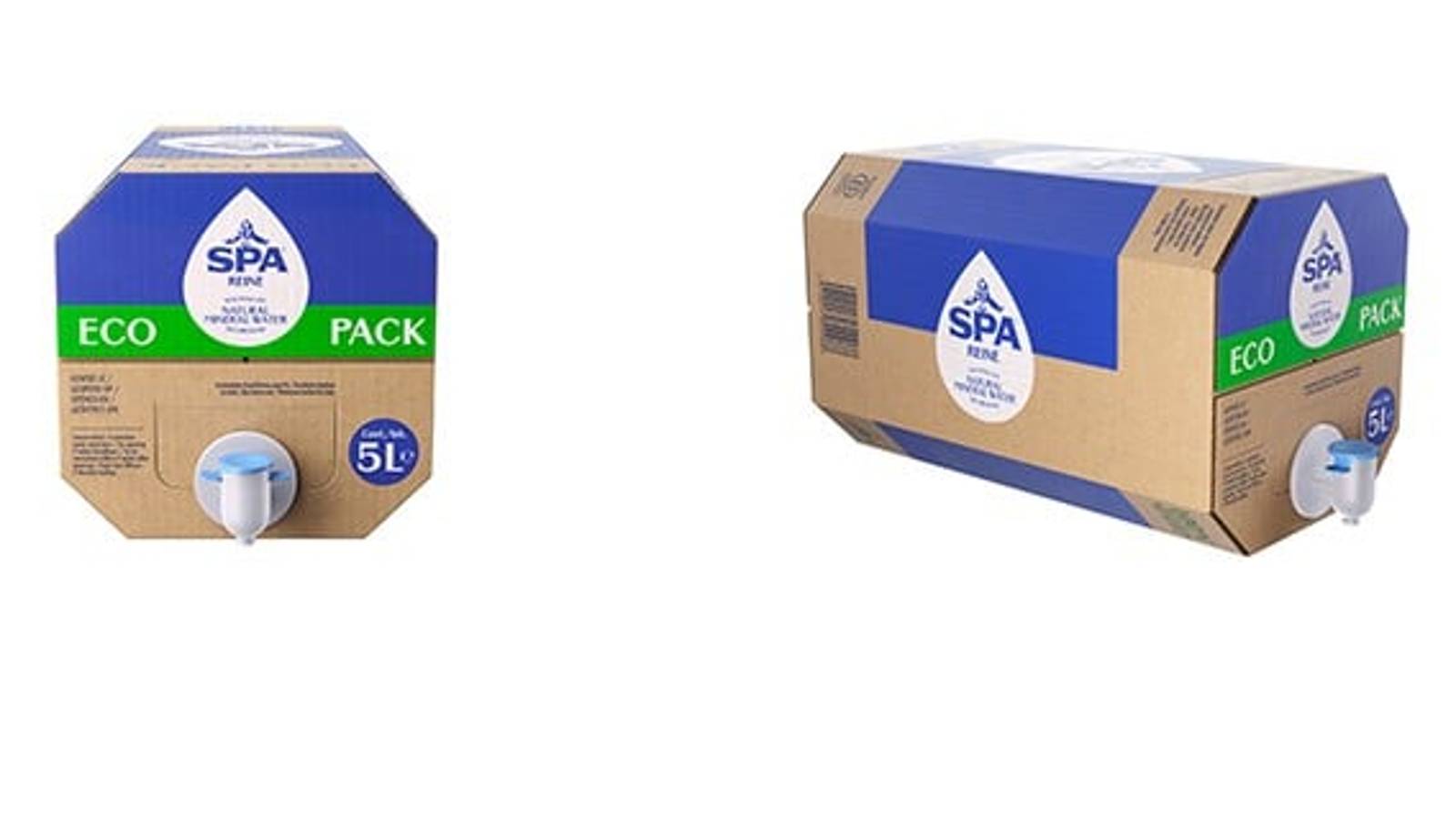 Eco Pack de SPA® es 100% reciclable y práctico para el uso diario, debido a su diseño innovador. El envase está fabricado con materiales de cartón crudo y sin recubrimientos, para minimizar la cantidad de fibra utilizada. En los espacios en los que se agrega impresión en color al cartón, solo se utilizan tintas a base de agua. Además, el diseño octogonal no solo reduce la cantidad total de cartón utilizado, sino que también facilita, de forma segura y eficiente, apilar los Eco Packs de 5 litros hasta 6 niveles de altura sin necesidad de pallets adicionales, dentro de la cadena de suministro