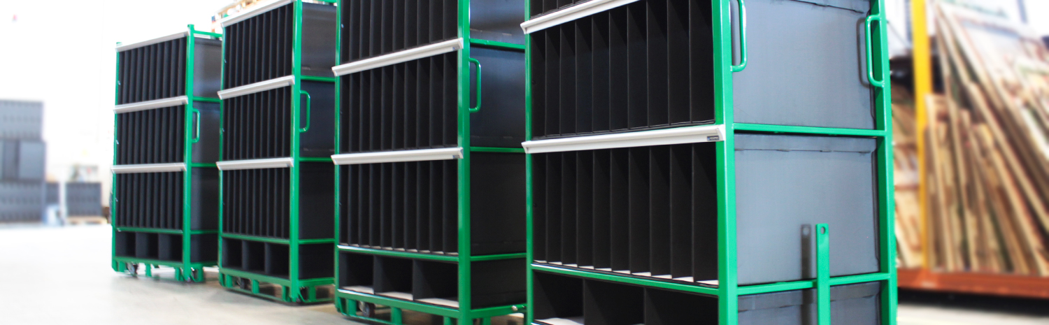 Racks y trenes metálicos con acondicionamiento interior multimaterial diseñado a medida de las piezas