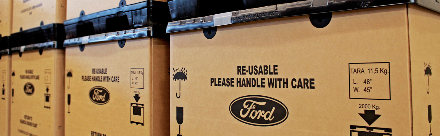Fabricados con cartón ondulado cuádruple de altas prestaciones, el contenedor está formado por un pallet, un cuerpo de cartón y una tapa de plástico, ofreciendo también a nuestros clientes la posibilidad de acondicionamiento interno a medida de las piezas a transportar (interiores troquelados en cartón para fijar las piezas, con espumas de amortiguación para proteger piezas delicadas, posicionadores de plástico...). Además de un alto número de reutilizaciones del embalaje.