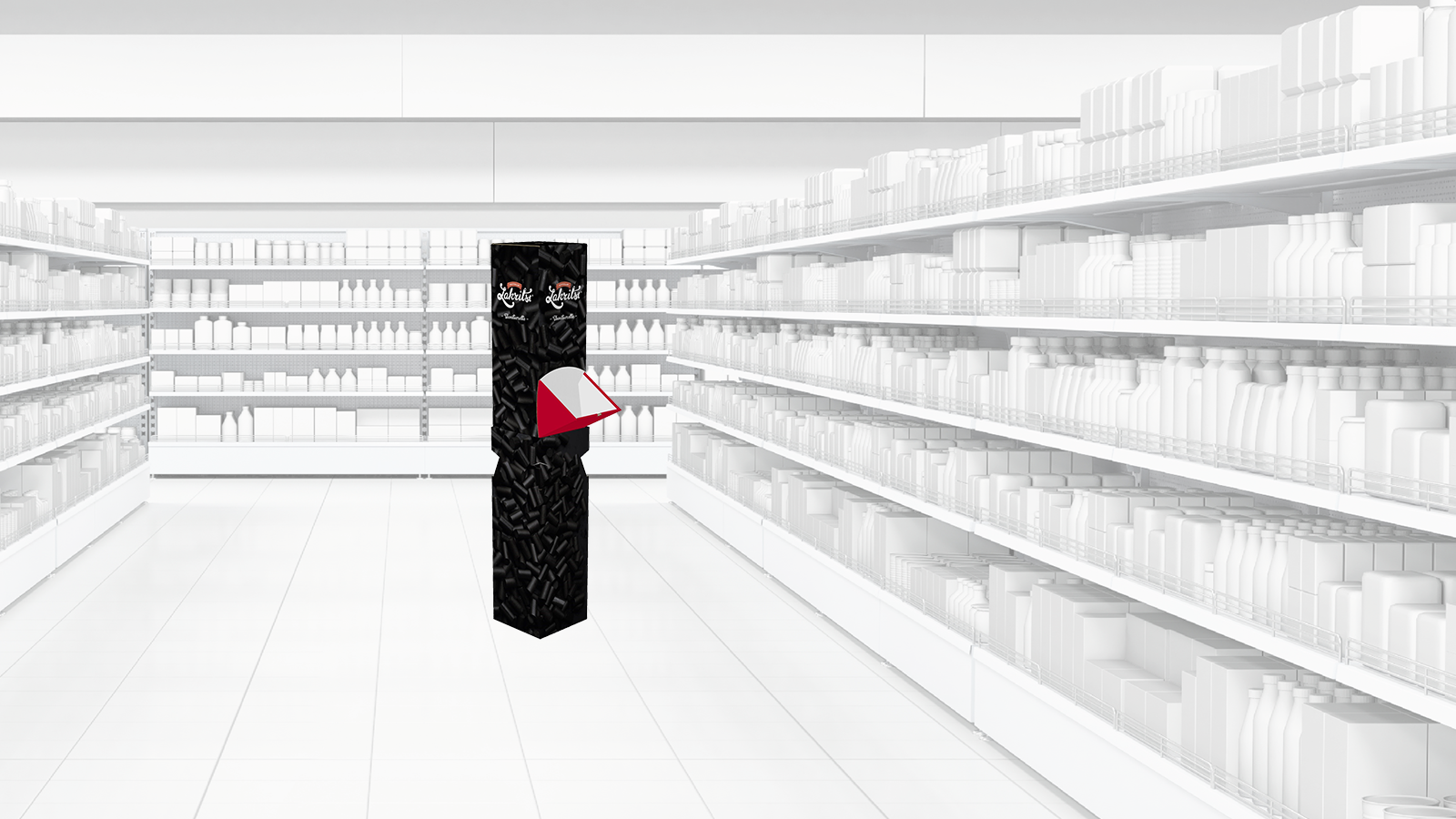 Kouvolan Lakritsin tarve oli saada myyntiteline, joka sopii erilaisiin myymälöihin – pienistä suuriin. Kestävä kehitys on yritykselle tärkeää, samoin johdonmukaisuus brändi-ilmeen kanssa, ja siksi he halusivat myyntitelineiden oleva aaltopahvista valmistettuja, katseita vangitsevia ja myymälöissä toimivia – ja lopuksi helppoja kierrättää, kun niitä ei enää käytetä.