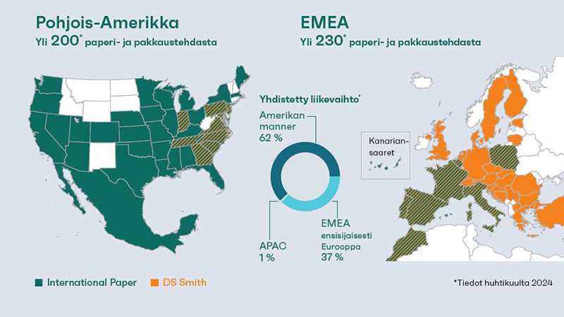 Kaksi johtavaa kestävän kehityksen mukaisten pakkausten, ja kartonkituotteiden ja sellun valmistajaa, International Paper ja DS Smith, yhdistivät voimansa 31.1.2025 ja muodostavat uuden globaalisti toimivan kestävän kehityksen mukaisia pakkausratkaisuja suunnittelevan ja valmistavan yrityksen.