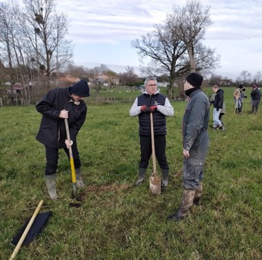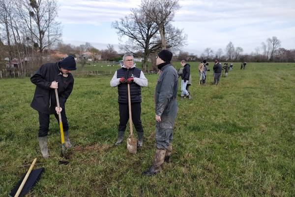 Mathieu et son cousin Grégoire sont agriculteurs en Vendée, où ils élèvent 65 vaches laitières en agriculture biologique. Engagés dans la restauration du bocage, ils ont planté 440 arbres sur 14,5 hectares en 2025, répartis sur trois nouvelles parcelles en agroforesterie. Cette plantation est reliée à notre site de La Chevrolière (44118)