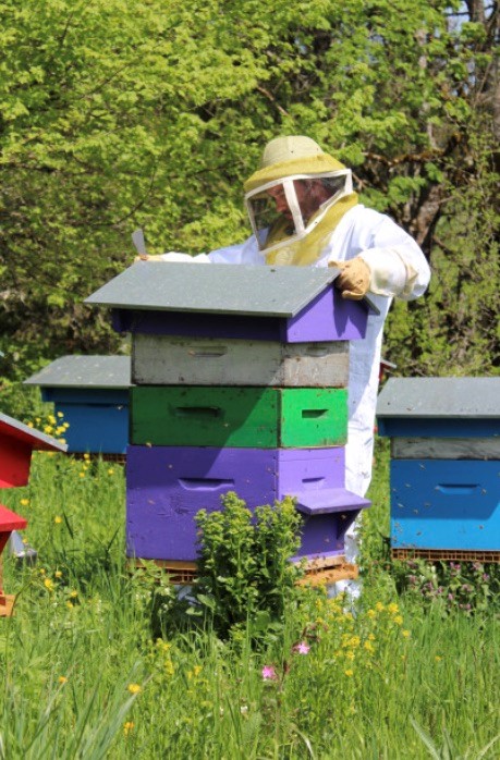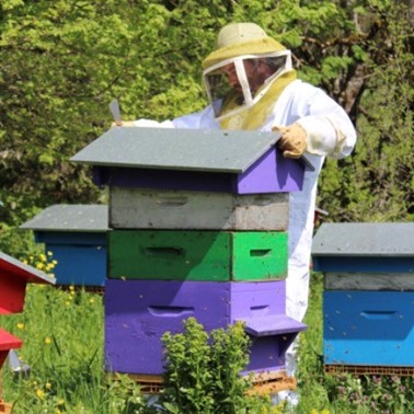 Apiculteur passionné, Mickael perpétue une tradition familiale débutée par son grand-père. Installé à 1000 mètres d’altitude, il produit des miels bio et artisanaux, ainsi que des produits dérivés (pain d’épices, hydromel, bougies…). Sa miellerie est labellisée « Bienvenue à la ferme » et fonctionne grâce à la géothermie et à l’énergie solaire. Cette plantation est reliée à notre site de Marnoz (39110)