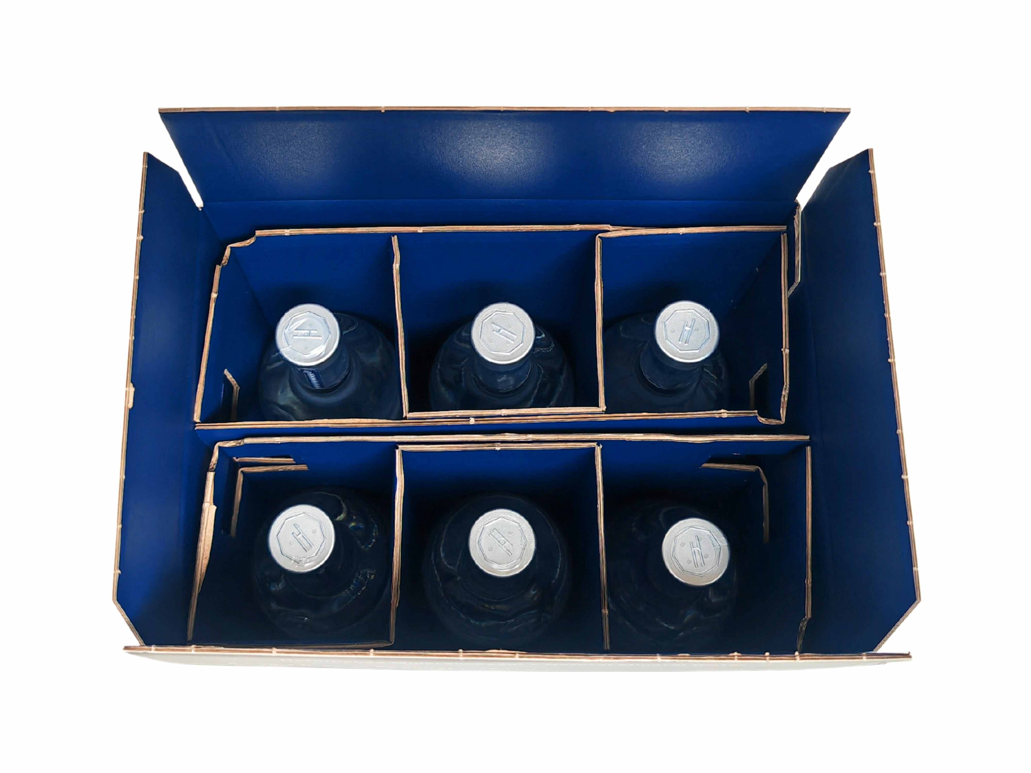Chaque boîte DS Smith peut contenir six bouteilles de 750 ml, et si besoin, la capacité peut être augmentée de manière flexible grâce à des caisses extérieures de différentes tailles pouvant accueillir jusqu’à neuf, douze, quinze ou dix-huit bouteilles supplémentaires.