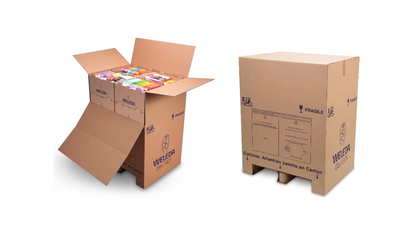 Un grand laboratoire pharmaceutique était à la recherche d'une solution d'emballage de regroupement pour remplacer les palettes en bois existantes afin d'améliorer l'ergonomie des postes de travail lors de la préparation des commandes. Nous avons identifié deux défis : rendre l'assemblage des boîtes aussi rapide et facile que possible pour les opérateurs de l'entrepôt et améliorer la recyclabilité pour le client final, en l'occurrence les pharmacies et les magasins. Nous avons recommandé de passer à nos palettes en carton ondulé qui sont faciles à assembler et 100% recyclables. Contrairement aux palettes en bois, notre solution en carton peut également être imprimée pour refléter la marque.
