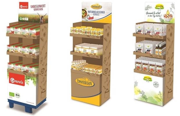 Les présentoirs en carton ondulé pour les PLV sont largement utilisés dans les magasins et la grande distribution.