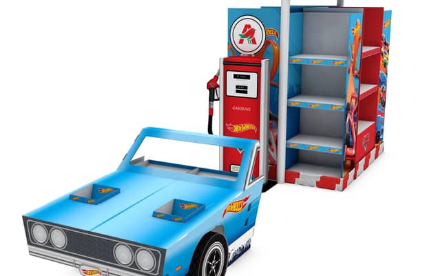 Les PLV en carton ondulé sont souvent utilisées en magasin et grande distribution.