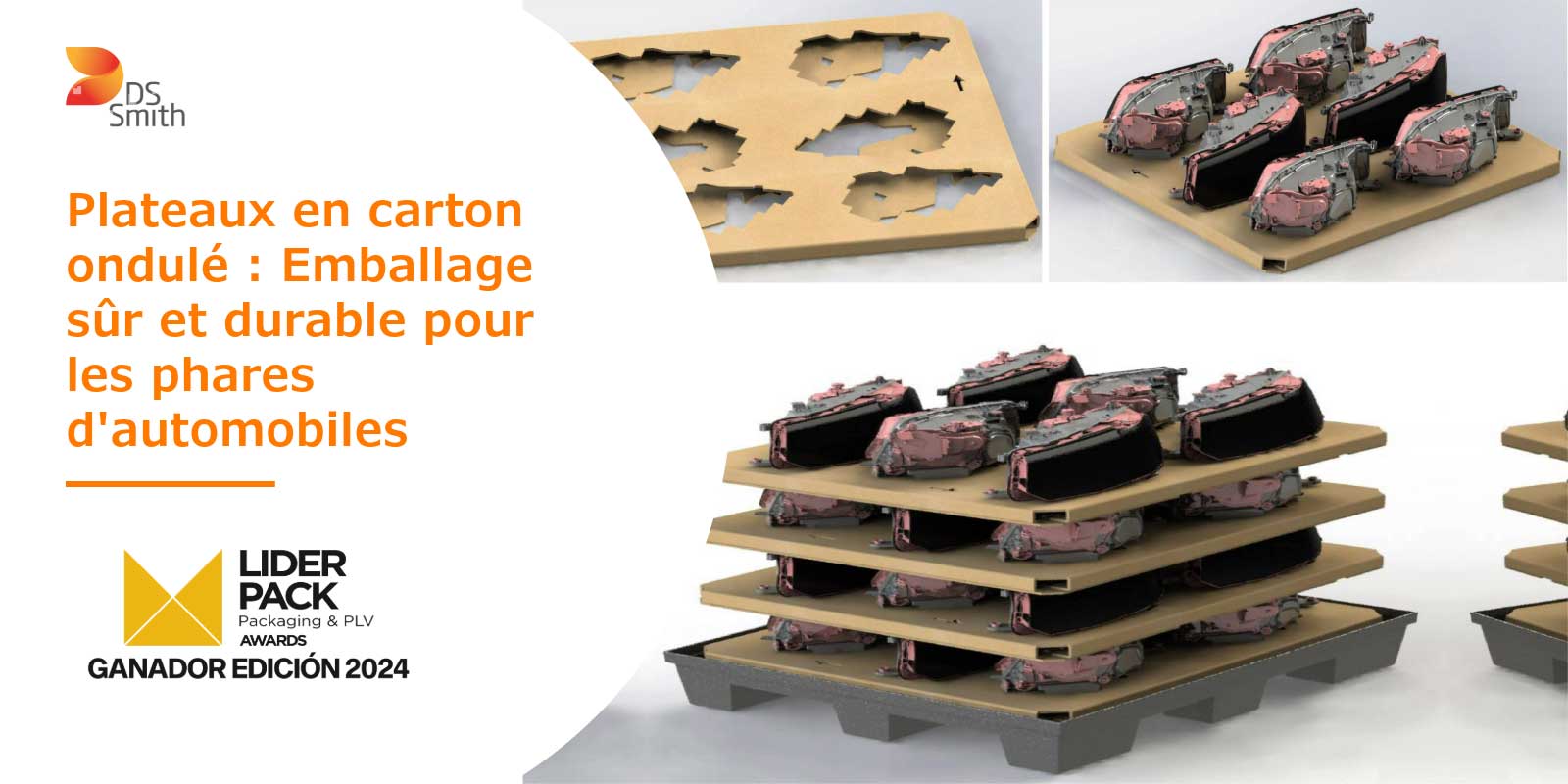 DS Smith Tecnicarton a le plaisir d'annoncer qu'elle a reçu le prix LiderPack de meilleur packaging logistique et de distribution pour nos plateaux en carton ondulé : Emballage sûr et durable pour les phares d'automobiles