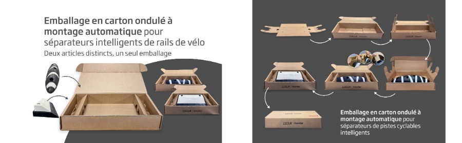 Emballage auto-assemblé pour les séparateurs de piste cyclable intelligents de ZICLA