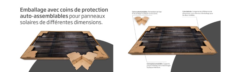 Emballage avec coins de protection auto-assemblables pour panneaux solaires