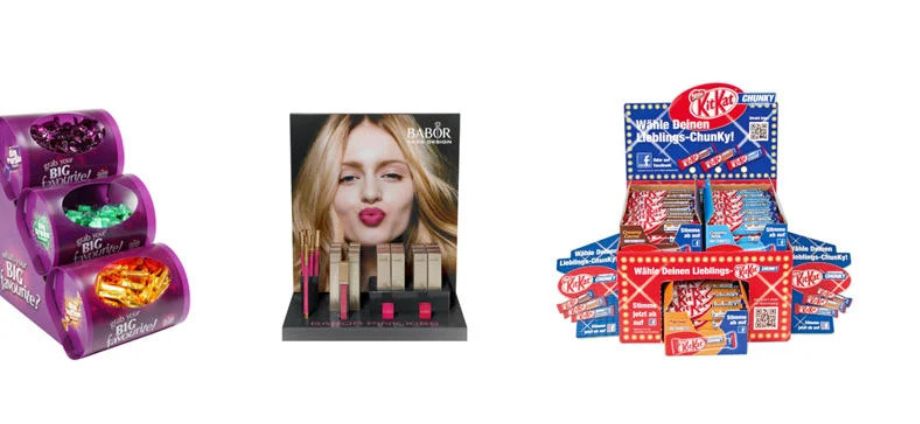Az üzletekben és szupermarketekben gyakorta használnak „értékesítés helyi” displayeket, ezek figyelemfelkeltőek kell, hogy legyenek, és hatékonyan kell közvetítsék a márkaüzenetet.