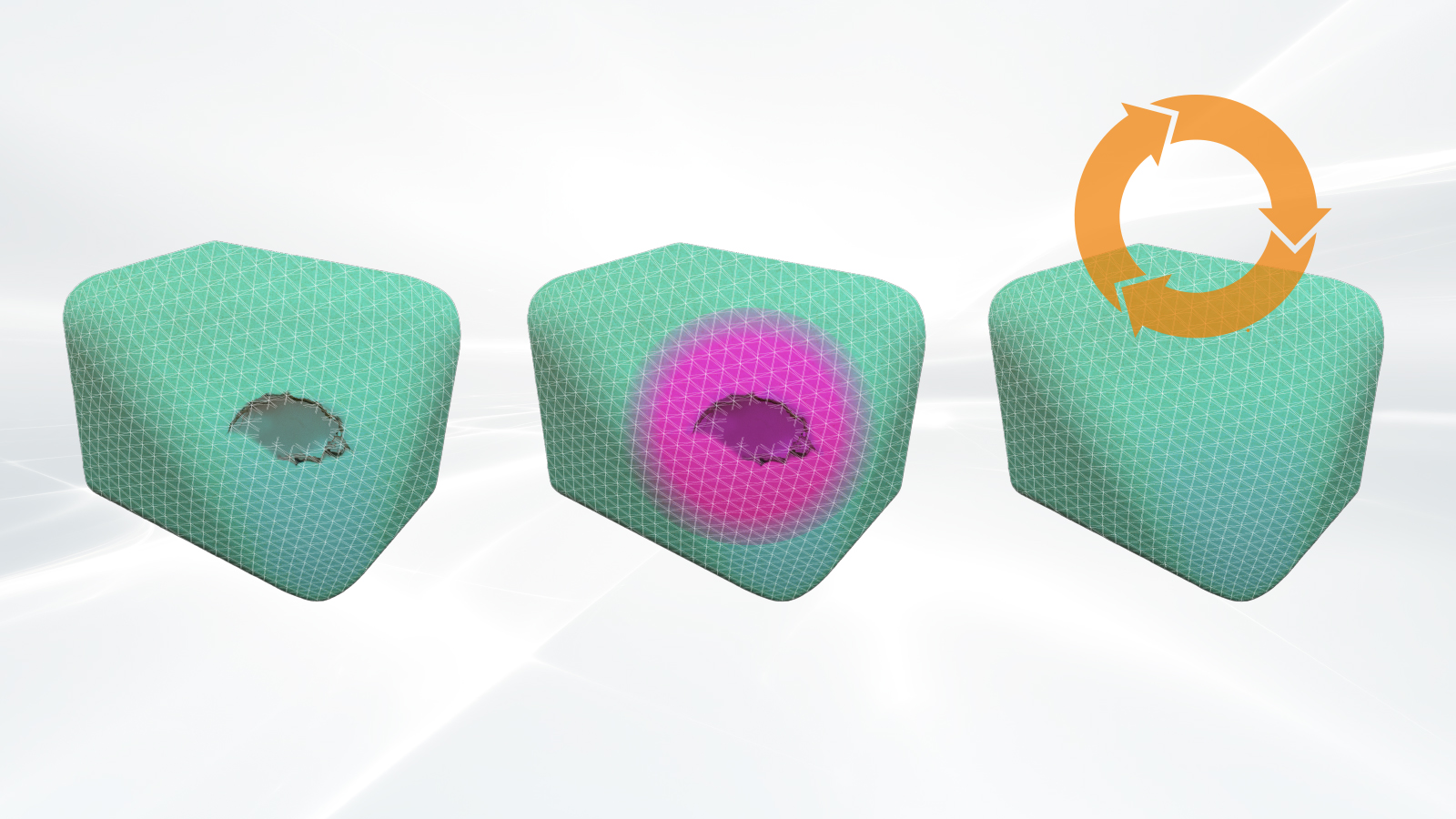 Regenerative ‘scar tissue’: healing itself just like the human body, the surface stretches and thickens to cover the injury, and transmits data to the delivery company and the recipient to tell them it is pausing to heal itself en route.