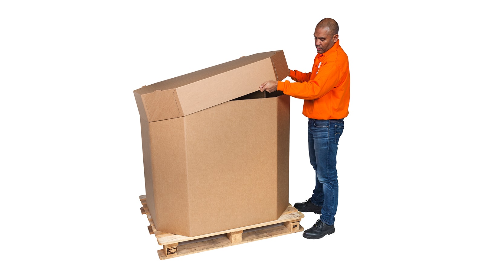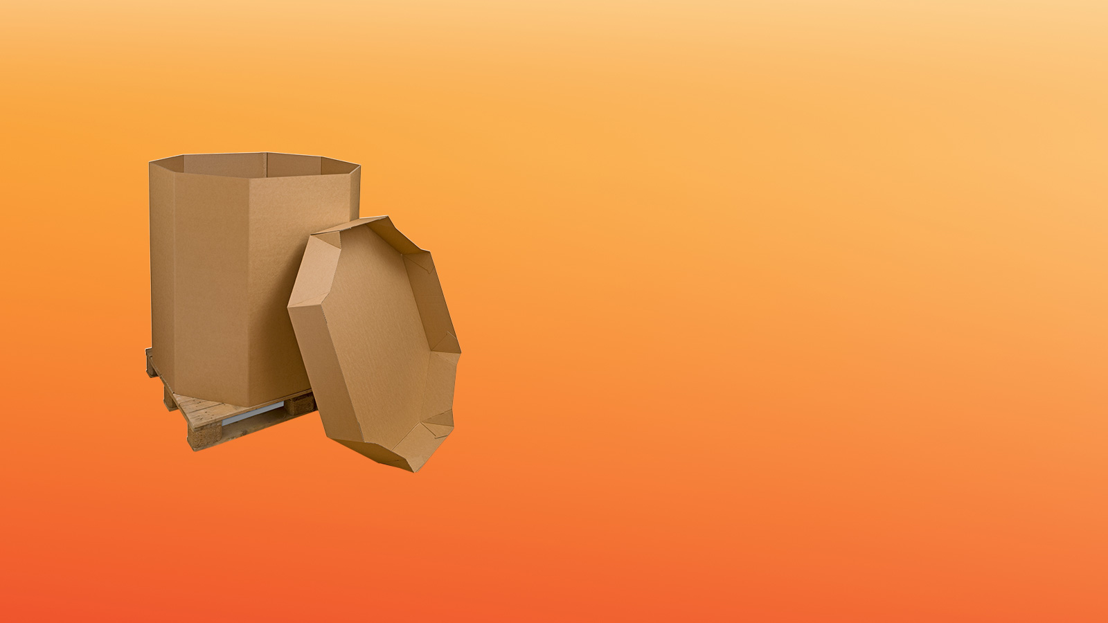 Deze 'klassieke' octabin bestaat doorgaans uit 8 gelijke hulspanelen, een bodem en een deksel. Dit type octabin kunnen we ook produceren met ongelijke afmetingen, zodat hij past op ongelijkzijdige pallets zoals europallets.