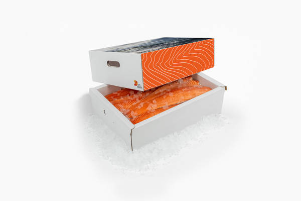 Fiskekassen DryPack er tilgjengelig i tre standardstørrelser med hvit eller brun inn- og utside, alle tilpasset paller for enklere transport.