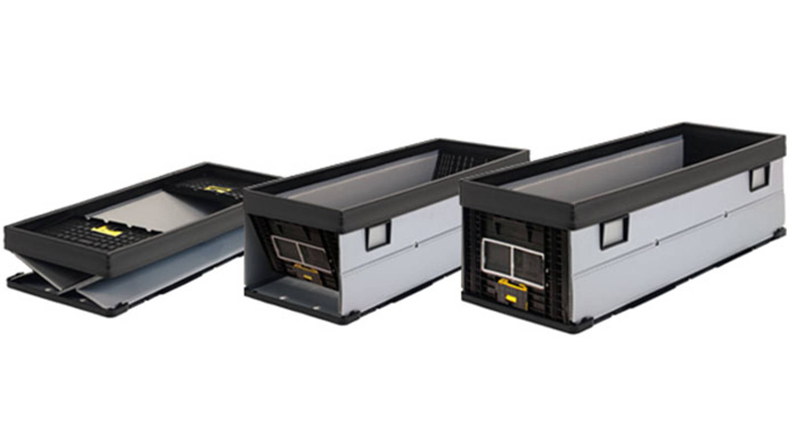 Esta embalagem não requer investimento em moldes, reduzindo os custos de produção, e seu robusto perfil perimétrico confere uma resistência excecional, garantindo que a Fold-Bac possa ser utilizada diretamente na linha de montagem, aumentando a produtividade.