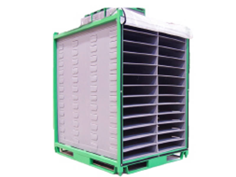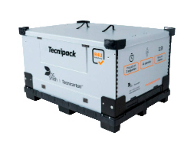 O seu design permite a entrega direta à linha de montagem do cliente e, para aumentar a segurança, inclui posicionadores automontáveis de cartão na base do recipiente e na parte superior das peças, garantindo a fixação e proteção durante todo o transporte.
