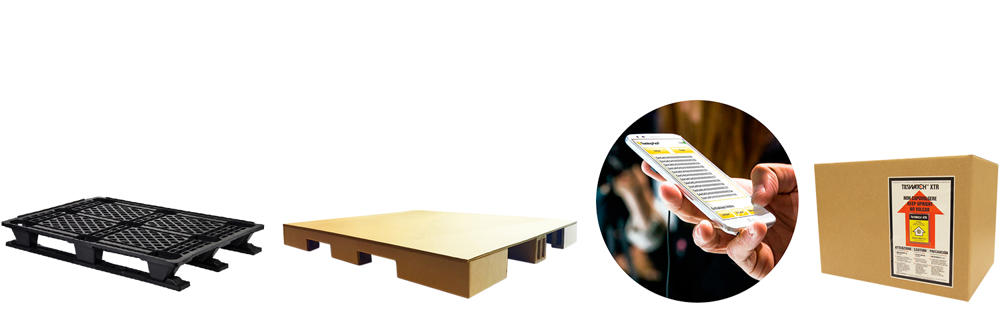 Desde paletes, tanto de plástico como de cartão, até dispositivos inteligentes para as embalagens, capazes de fornecer a informação necessária sobre o produto contido(humidade, temperatura, impactos...)