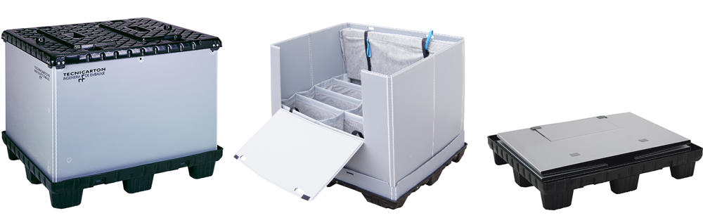 Grandes contentores retornáveis com acondicionamento sob medida e multimaterial