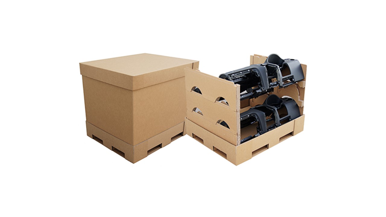 Containere din carton ondulat pentru depozitarea și transportul de produse sau echipamente grele.