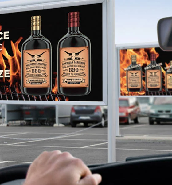 Easyad är en effektiv utomhusreklam som sticker ut. Det tryckta arket kan vara dubbelsidigt, vilket gör det enkelt att byta budskap genom att vända på det.