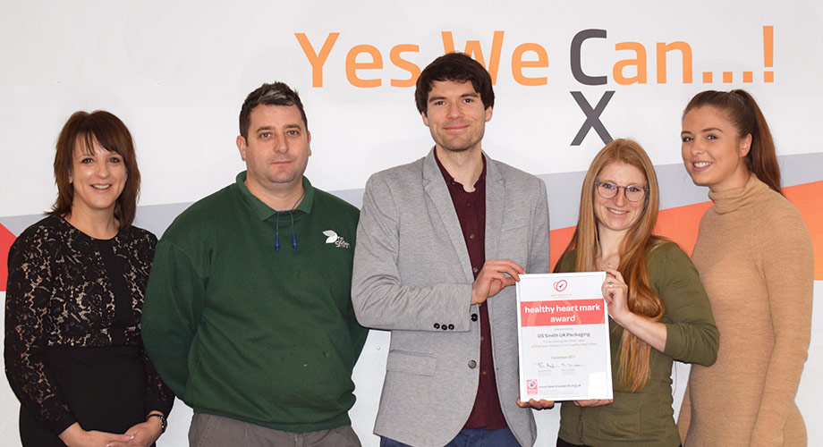 National charity Heart Research UK has awarded DS Smith’s UK Packaging site in Clay Cross, Derbyshire, a prestigious silver Healthy Heart Mark employer award for promoting and encouraging healthier lifestyles amongst its employees.